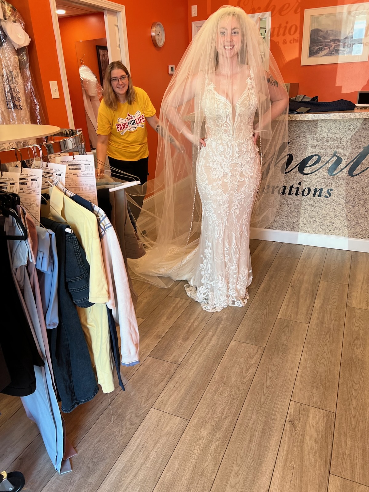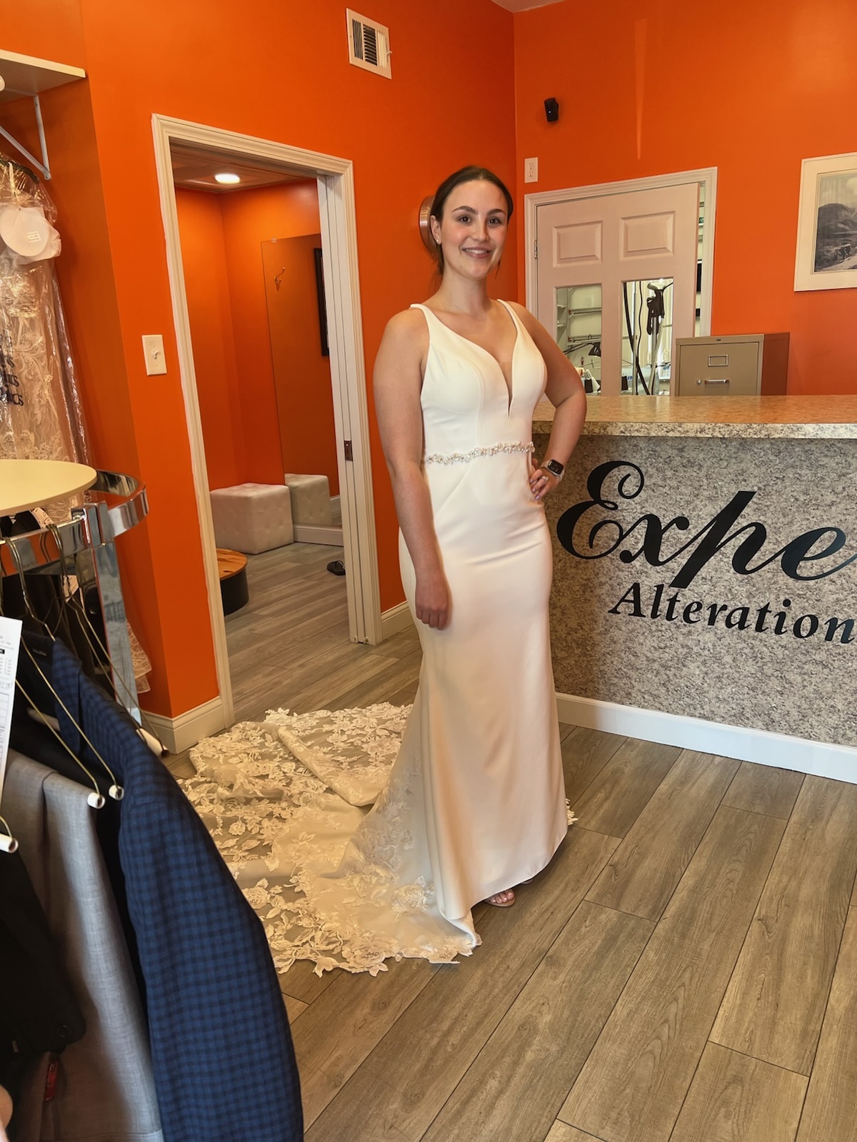 • Wedding Gowns • Gown Bustling • Leather • Bridesmaids • Prom Dresses • Business Suits • Fur Coats • Evening Gowns • Weaving • Suede • Uniforms • Hem Cuffs • Robe Hem Details • Relining • Pressing and Steaming Fancy Tricky Jeans Hem Beadwork • Taper Sleeves • Skirts Remove Pockets • Plain Bottoms • Resizing • Remove Belts Loops • Pants into Shorts Take in back of Bra • Add padding or Bra Cups • Sides In/Out • St. John Knits • Jeans Waist In • Top Stitch Shirts & Blouses Taper Legs • Shorten • Sleeves • narrow shoulders • Bust Darts • straps and jump suits • zipper repair.